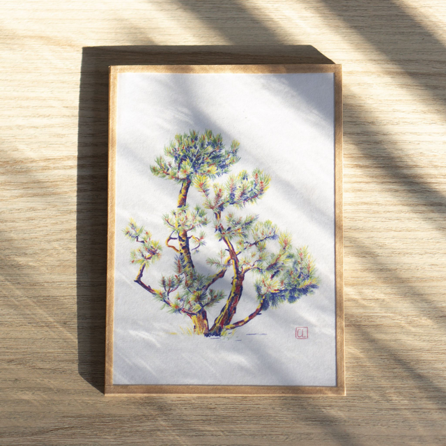 · Encadré main verre acrylique et kraft gommé, anneau à l'arrière